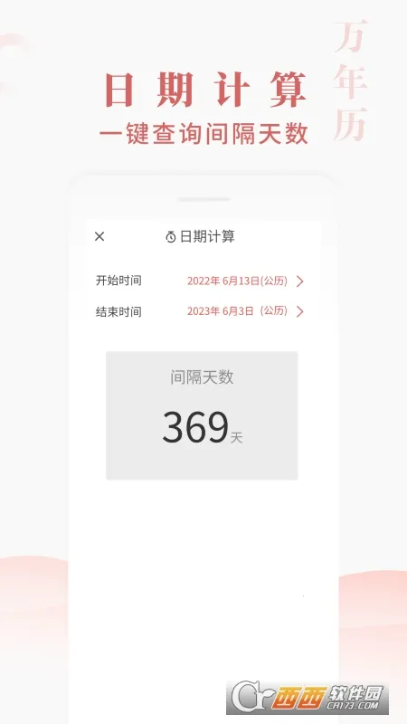 4、使用体验良好:软件内存小,运行流畅不卡顿,界面清晰简洁,方便用户快速找到所需功能,还能一键查询两个日期之间的间隔天数。