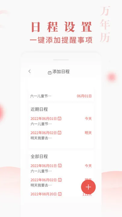 2、贴心提醒功能:支持快速添加日程提醒,能多次周期性重复提醒,添加亲朋好友生日记录,区分公历和农历生日,让你不再错过重要日子,及时送上祝福。