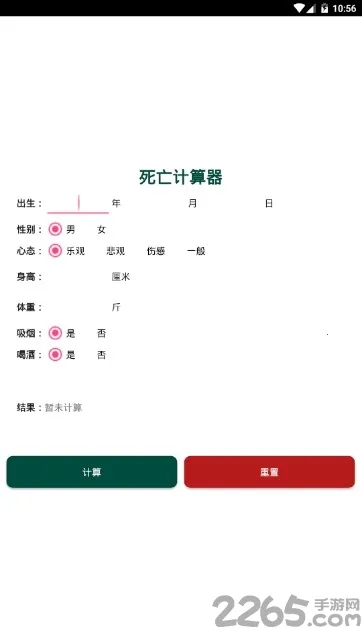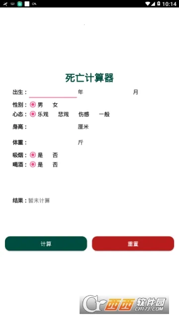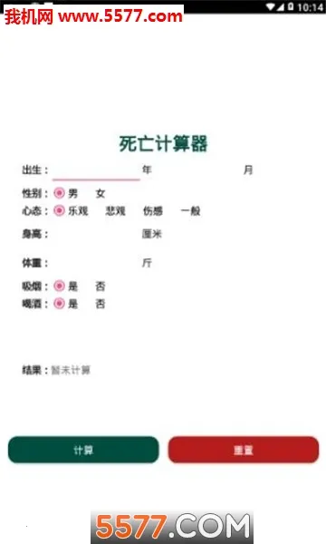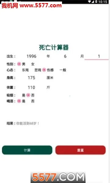 死亡计算器2025最新版本是一款趣味软件,可通过填写出生时间、性别、身高体重等数据计算存活时间,数据仅供娱乐。它能记录生命全过程,估算陪伴家人等情况,还能进行心愿和目标管理,操作简单,可分享结果。