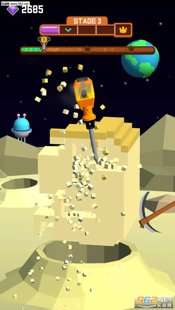 4、升级提升效率:收集相应材料升级机器,激发其最高工作效率。通过出售资源解锁更高级工具,如电动钻头、爆破装备等,让挖掘速度大幅提升。