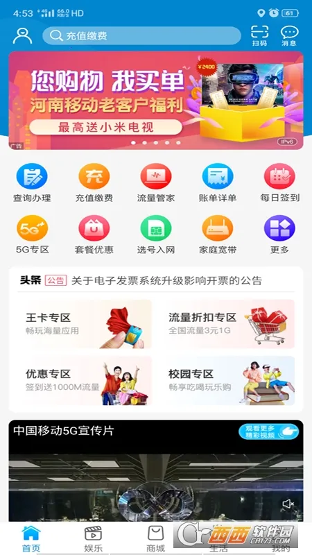 河南移动网上营业厅是中国移动为河南用户打造的生活服务软件,可查询话费、账单、流量,办理套餐、充值缴费等业务。充值有积分,每日签到得流量,还能参与热门活动,支持多方式登录,让服务更便捷。