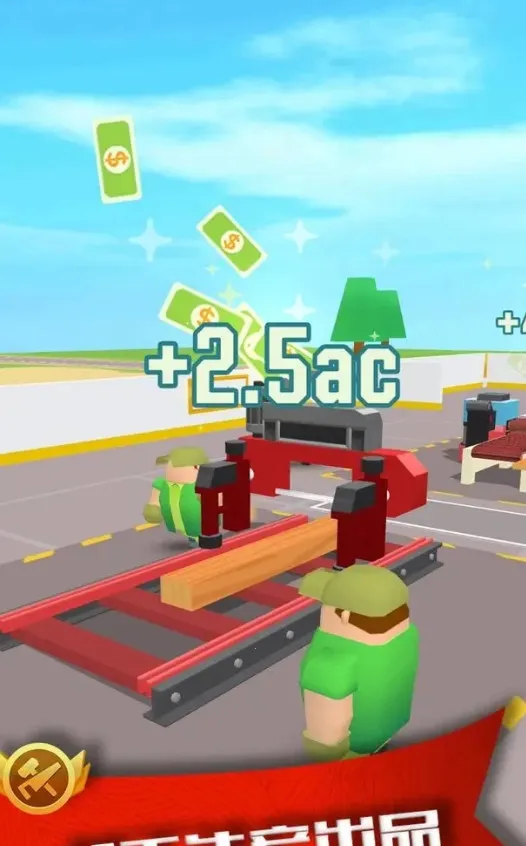 3、场景道具丰富:随着公司的扩大,可以购买高级办公道具提升员工办公效率,还能解锁更多办公场景。同时在伐木工厂玩法中,可购买和升级农业器械、车辆等,建立生产管线,制作木质产品。