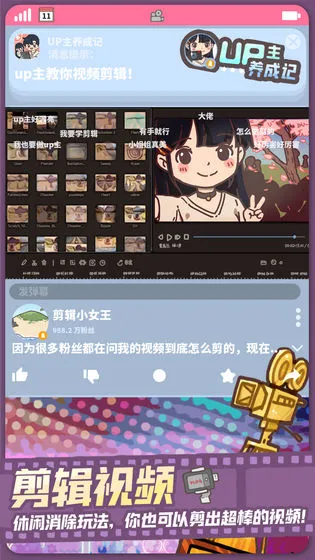 玩法多样,玩家通过制作优质视频吸引粉丝,挑战消除游戏解锁道具,根据角色特点打造个人风格。同时,游戏提供了不同风格的搭配技巧和高分攻略,帮助玩家成长为优秀UP主。如果你怀揣成为UP主的梦想,这款游戏值得一试。