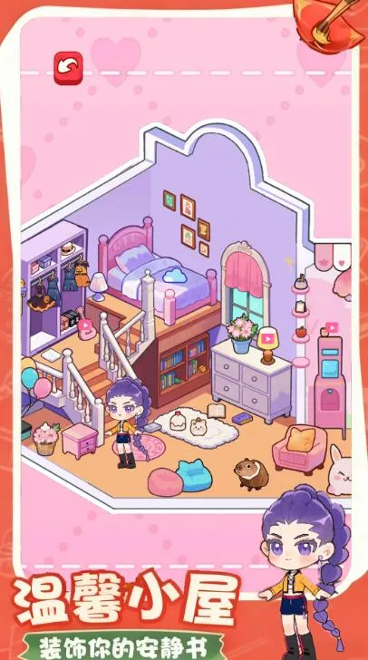 这款游戏能让玩家与不同造型的角色互动,体验丰富玩法。在游戏里,玩家可以搭建小屋、设计服装,让角色体验明星生活。通过完成创作目标,可解锁更多女团成员,每个成员都有独特外观与性格。游戏中的活动能让玩家获取多样服饰,部分还可通过互动解锁。安静书内页的互动元素丰富,能推动角色故事发展。