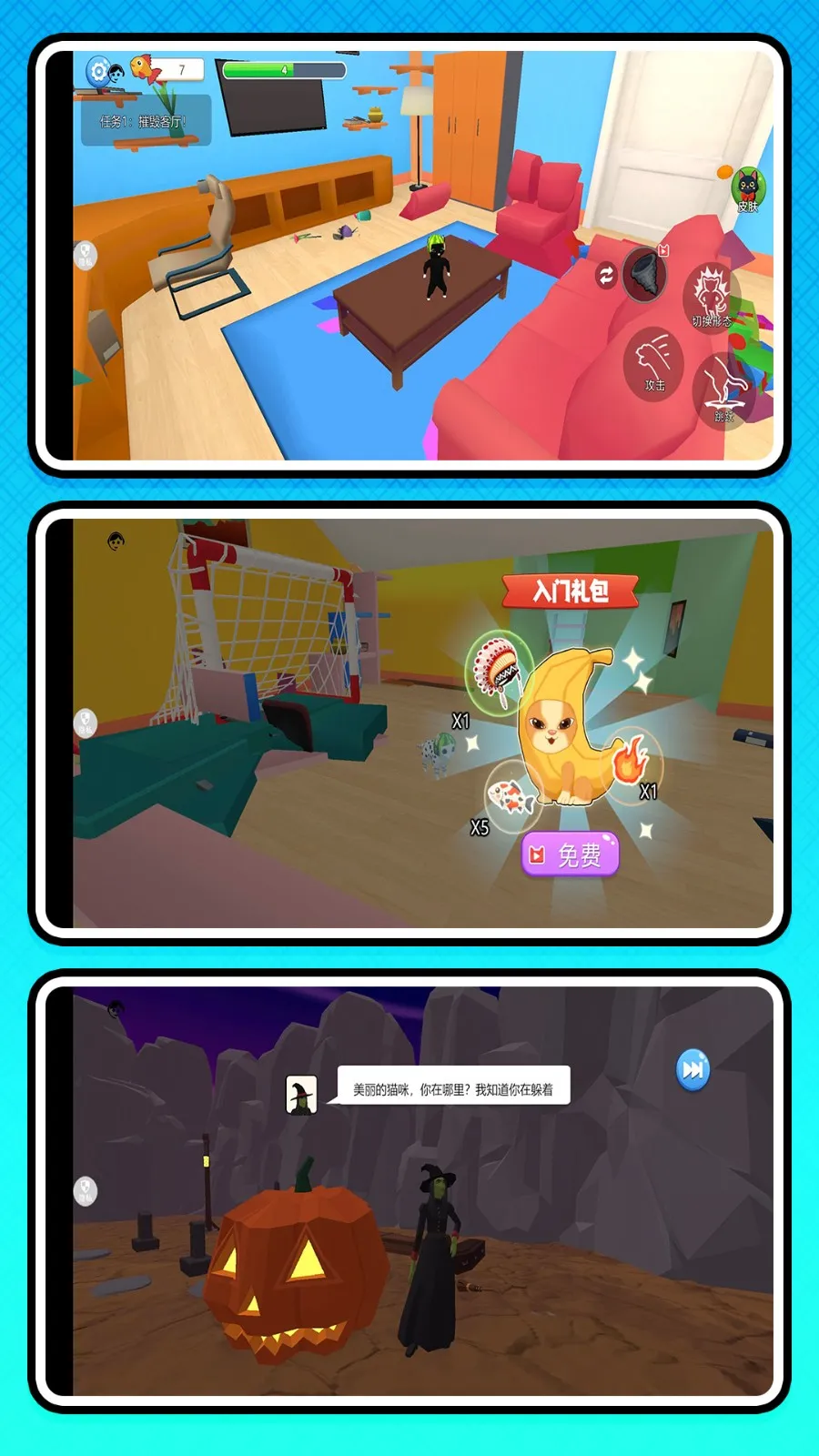 游戏亮点颇多,积累积分或完成任务可解锁新场景、猫咪皮肤和特殊破坏动作。场景万物皆能互动,部分互动还会触发隐藏剧情。还支持自定义猫咪外观,增添收藏乐趣。