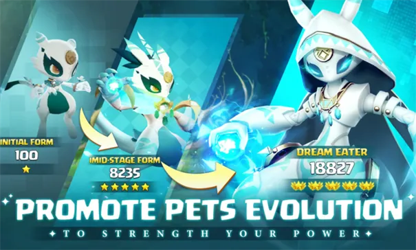3、宠物进化晋升:宠物拥有无限潜力,通过战斗和培养可帮助它们进化,解锁新形态和技能,打造独一无二的终极宠物。