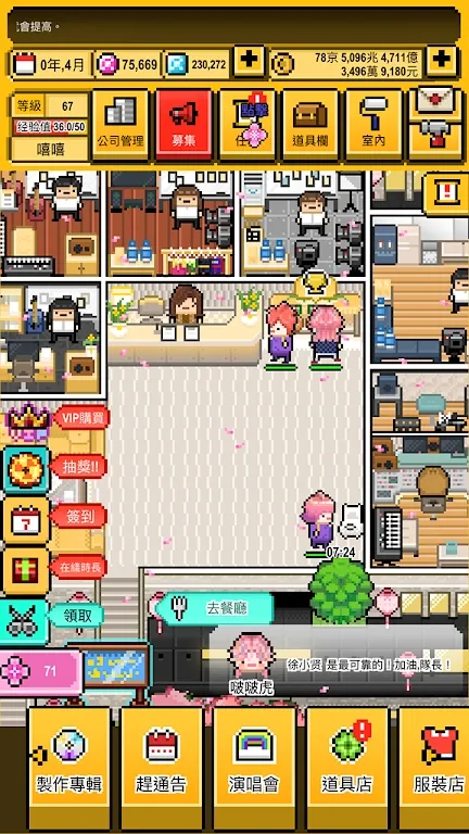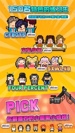 《偶像天团养成记无限金币钻石版》是像素风格模拟经营手游。玩家化身经纪公司老板,可亲手组建偶像团体,为其量身规划养成计划。游戏玩法丰富,有专辑制作、赶通告、开演唱会等,且已破解,有无限金币钻石。