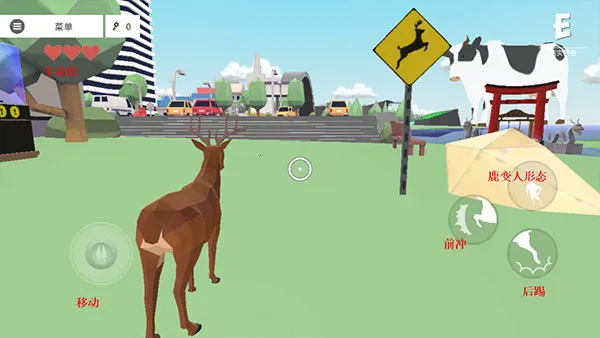 1、独特能力鹿:玩家扮演的鹿拥有奇特能力,能随意伸缩脖子,还可利用鹿角做利器,能像人一样站立、拿武器攻击甚至变身摩托车,还能控制两种走路姿势,直立走路速度飞快。