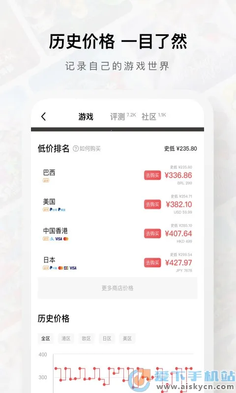 3、实惠游戏价格:具备游戏折扣功能,可对比全球价格,商店打折一目了然,还有折扣提醒,能让玩家以骨折价和史低价入手游戏,3A大作半价玩不是梦。