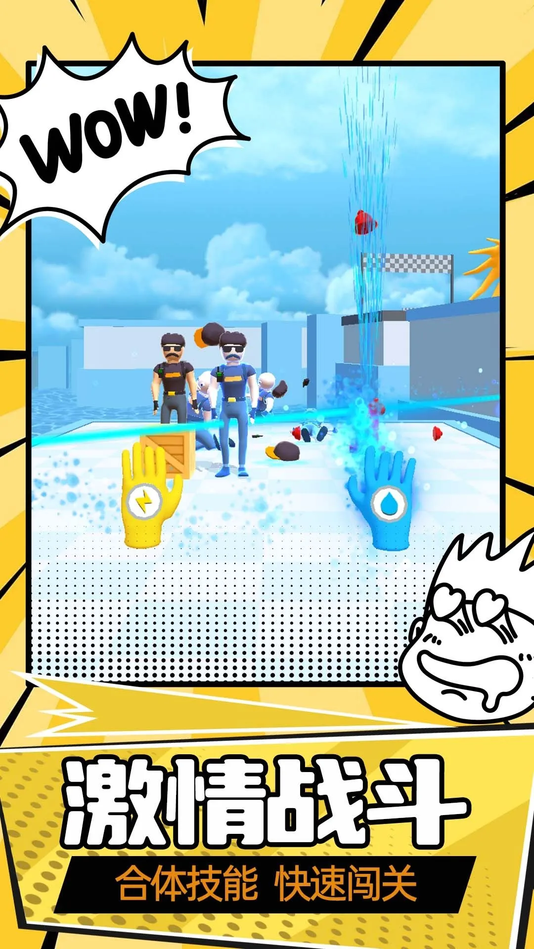 1、简单有趣玩法:玩家能第一时间控制两个手套,通过发射电击消灭敌人闯关。两只手可同时瞄准敌人,以最快速度击溃对手,带来酣畅淋漓的战斗体验,只需按提示对目标攻击,击杀全部敌人即可通关。