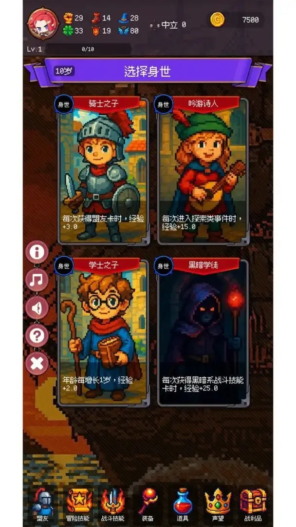 中世纪人生模拟器带来了别具一格的游戏体验。玩家扮演勇者开启中世纪地牢探索之旅,众多职业选择让战斗更加多样,不同角色技能各异,战斗升级、强化装备充满乐趣。游戏里命运充满未知,每一次抉择都可能改写结局,像是在编织一场人生幻梦。