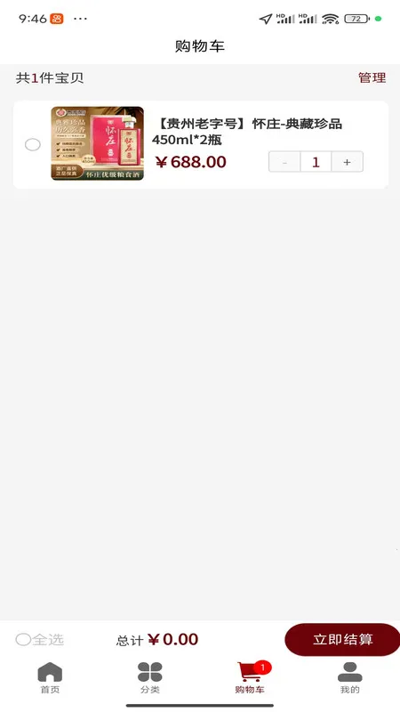 其购物流程便捷,登录账号即可享受服务,首页有爆款专区、精品品鉴等推荐板块,分类页面查找产品也很方便。一键点击查看酒品详情,还能秒速对比,看中就能直接付款。