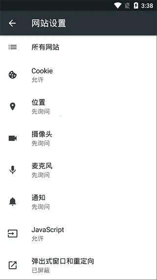 Kiwi 的设置非常丰富,包括搜索引擎、主页、隐私、权限、无障碍等。