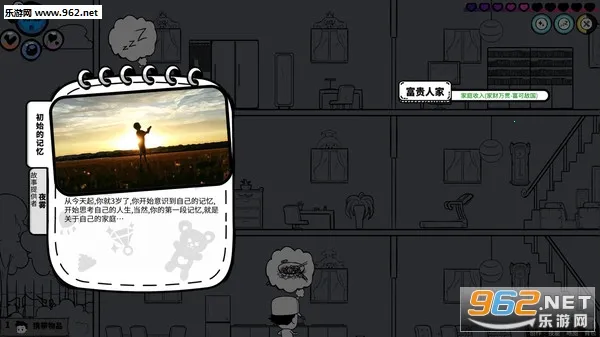 3、真实模拟感受:游戏采用黑白风格画面,以极度抽象又写实的方式虚拟现实人生。在游戏中,玩家可能错失良机也可能因祸得福,经历童年、成年等阶段及人生种种事件,更贴近真实人生。