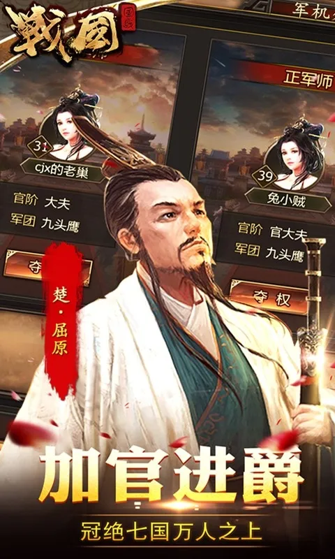 游戏真实还原战国七雄势力版图,你能选择不同阵营,体验丰富历史剧情与战略挑战。核心玩法融合武将养成、城池建设与联盟争霸,还能招募白起、孙膑等名将,搭配多兵种在沙盘地图展开实时对决。动态天气系统让战场更真实,外交手段也能让你感受真实政治博弈。