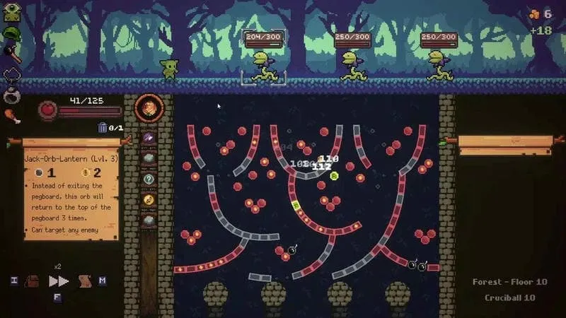 3、独特战斗机制:采用弹珠台式攻击机制,击中钉子数量决定伤害高低,还可巧妙运用暴击钉、刷新钉和炸弹。每局游戏体验独一无二,沿途能发现各式弹珠,遭遇不同敌人,收获意外惊喜。