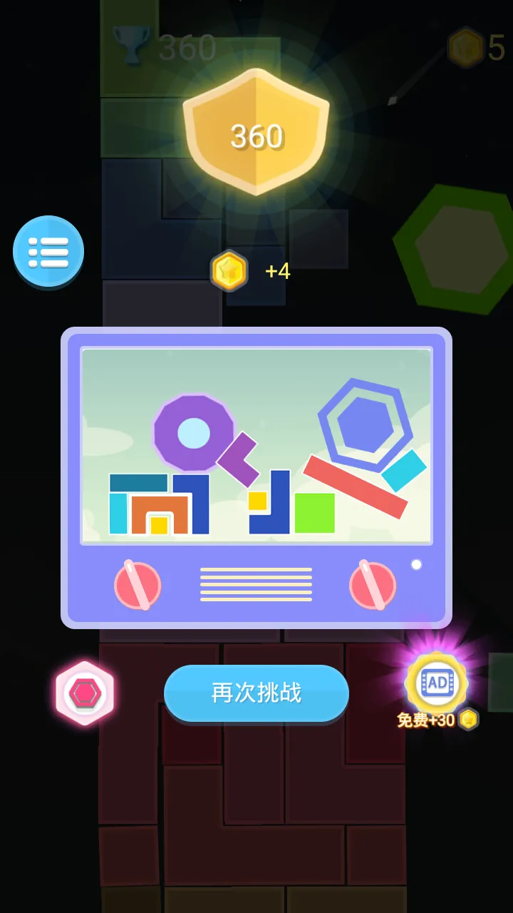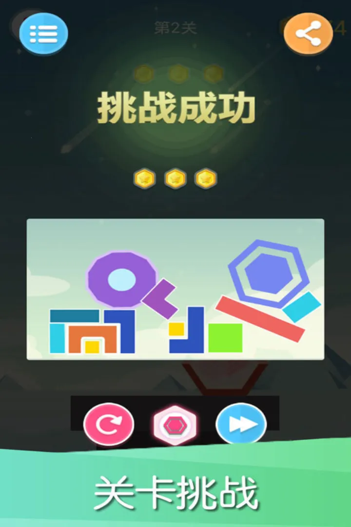 2、新颖题材玩法:全新的休闲益智游戏题材,玩法丰富多彩,玩家在游戏中需让六角形下落并保持平衡,充满趣味与挑战。