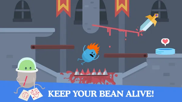 3、当然,随着关卡的进行,危险的难度也会越来越复杂,我们要尝试各种方法来帮助豆子人,及时失败也没关系哦,点击重新开始就能再次尝试了。