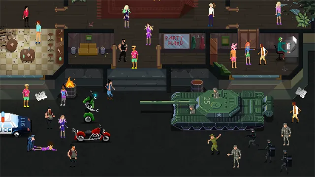 PartyHardGO是一款冒险解谜策略游戏,玩家扮演受派对困扰的市民潜入报复。它有新奇像素风,提供多种报复手段。有数十种陷阱、道具组合,可使用多杀技能,关卡多,地图分房间,可玩性高。
