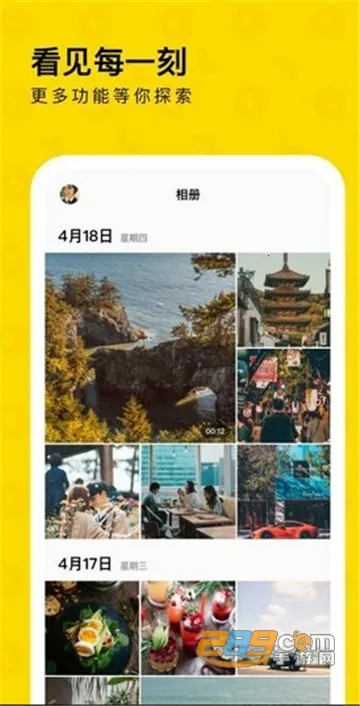 4、相册浏览鲜活:时光轴滚动浏览自动播放视频,动起来的相册让记忆更鲜活。