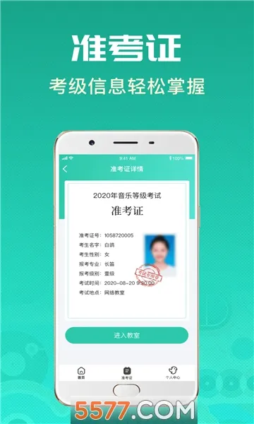 3、考级服务专业:是全国首家拥有音乐类专业直播技术的服务平台,提供规范的线上考级流程,为全国音乐等级考试提供线上考级服务,可实现考级完整生命周期,还能通过软件查看准考证信息、安排考试。