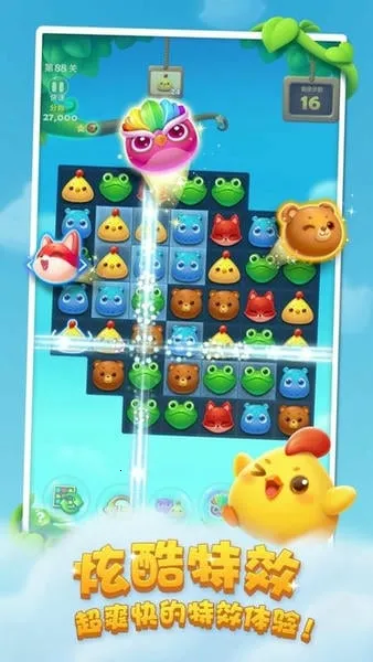 3、简单易上手:采用休闲三消玩法,玩家轻移指尖,让三个及以上同色小动物横竖相连即可消除,10岁以下孩子和中老年人都能轻松操作。
