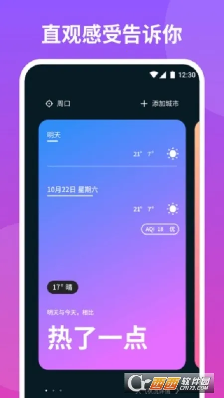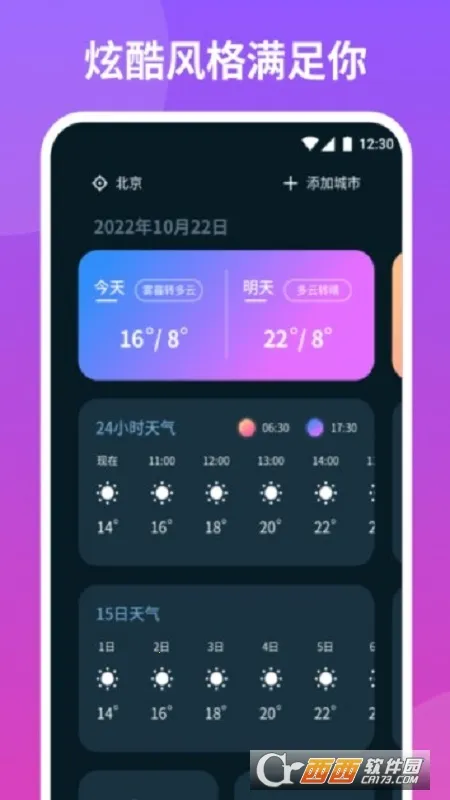2、信息详细:无论身处大城市还是小县城,都能获取实时温度、湿度、风力、空气质量等详细数据,还能查看未来15天的天气趋势和小时级天气预报。