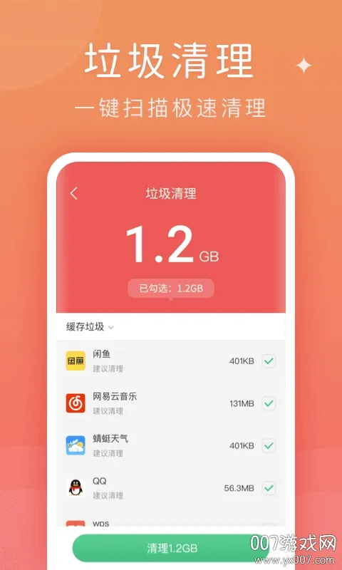 1、深度清理:采用智能识别技术,全面扫描无效数据与缓存垃圾,不仅能清理常规垃圾,还能识别深藏在系统角落里的无用文件,彻底删除占空间的隐形垃圾,让存储空间立刻变大。