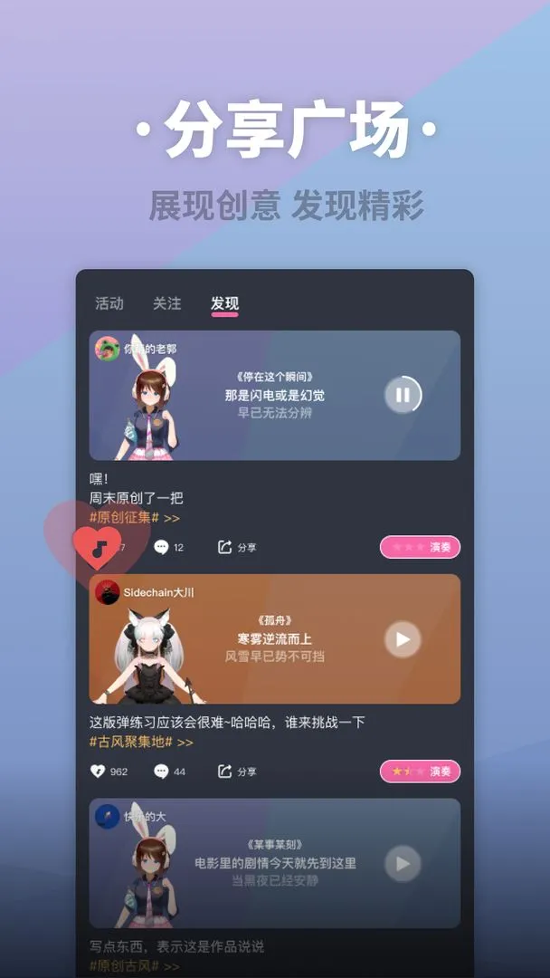 自由创作:能随心组合歌词,充分发挥想象力创造新音乐作品,还可调节滑音玩出独特音乐风格。