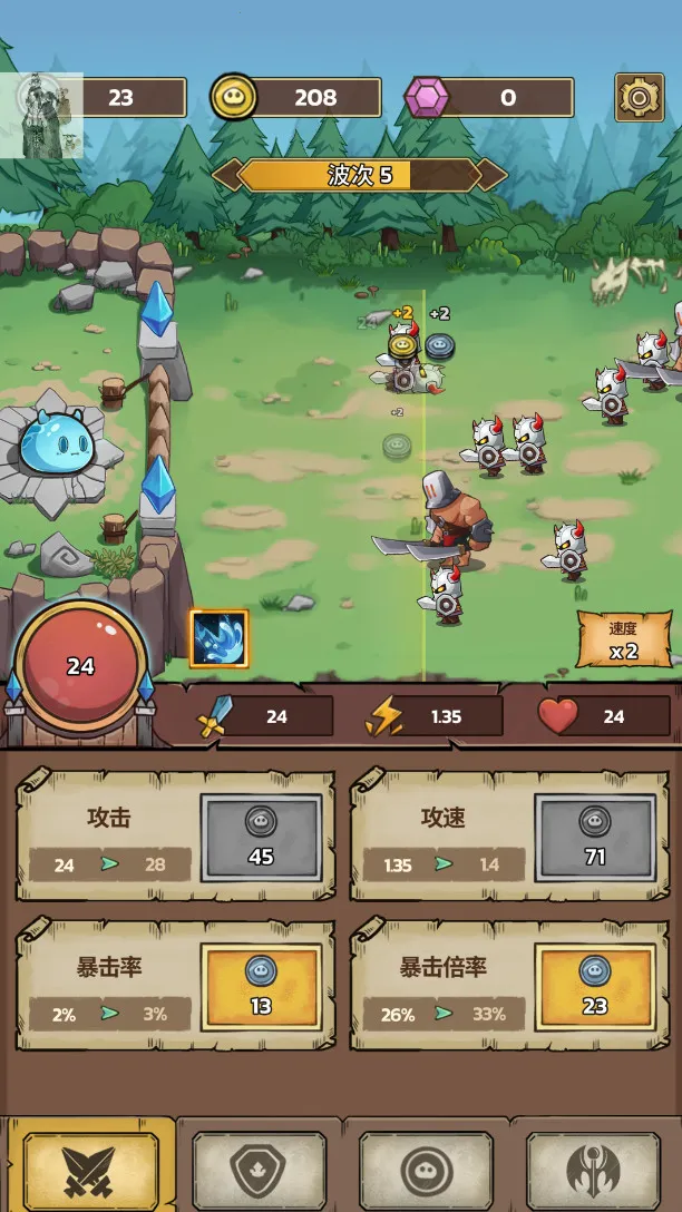史莱姆城堡汉化版是一款史莱姆题材休闲塔防游戏。玩家招募培育史莱姆英雄抵御入侵,融合放置战斗与角色养成,有丰富副本、强化合成等系统,画风可爱,玩法多样,能体验守护城堡的乐趣。