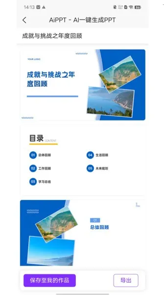 AiPPT2025是一款借助人工智能技术的PPT在线生成工具。能输入主题关键词或导入文档快速生成演示文稿,有海量模板素材,支持多方式生成、在线编辑协作、跨设备同步,适用于多场景,操作便捷。
