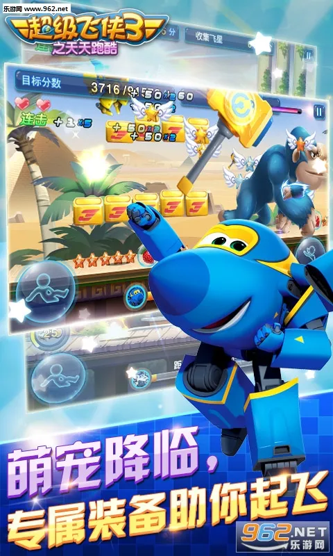 这里官方正版授权,全新版本持续有激战关卡等你挑战。强力坐骑萌宠伙伴助力,造型可爱,还能携带专属装备帮你飞跃障碍。每日登录有缤纷好礼。手机版关卡设计梦幻,童话风格浓郁,在幻想空间跑酷竞技,上百种道具随意搭配。能带你重温超级飞侠的冒险旅程,感受指尖滑动的流畅操作与视听盛宴,体验任务挑战的刺激,满足你轻松娱乐、享受童趣的需求,快来一起操控超级飞侠开启跑酷战斗吧。