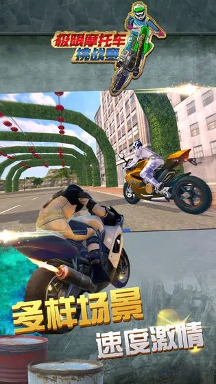 极限摩托车挑战赛是街机风格的极限闯关游戏,有逼真3D场景与车辆音效。含多种难度关卡、不同款式摩托车,支持线上竞技。玩家操控摩托应对障碍,限时闯关,还能切换视角,体验多样地形与刺激竞赛,解锁新车。