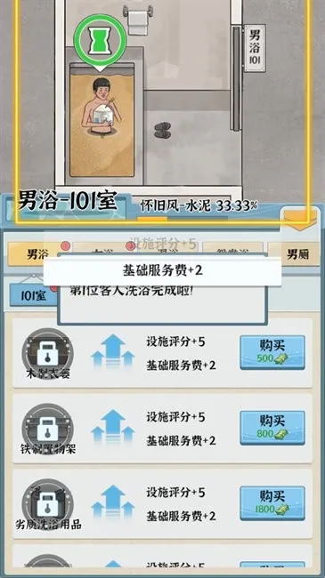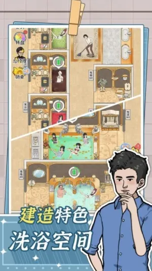 这是一款能让玩家充分体验经营乐趣的游戏。玩家化身浴场老板,从装修风格到设施建造,从特色服务到团队建设,事事都要亲力亲为。你可以自由选择高端老钱风或低调现代风,还能解锁丰富洗浴项目,打造专属浴场风格。