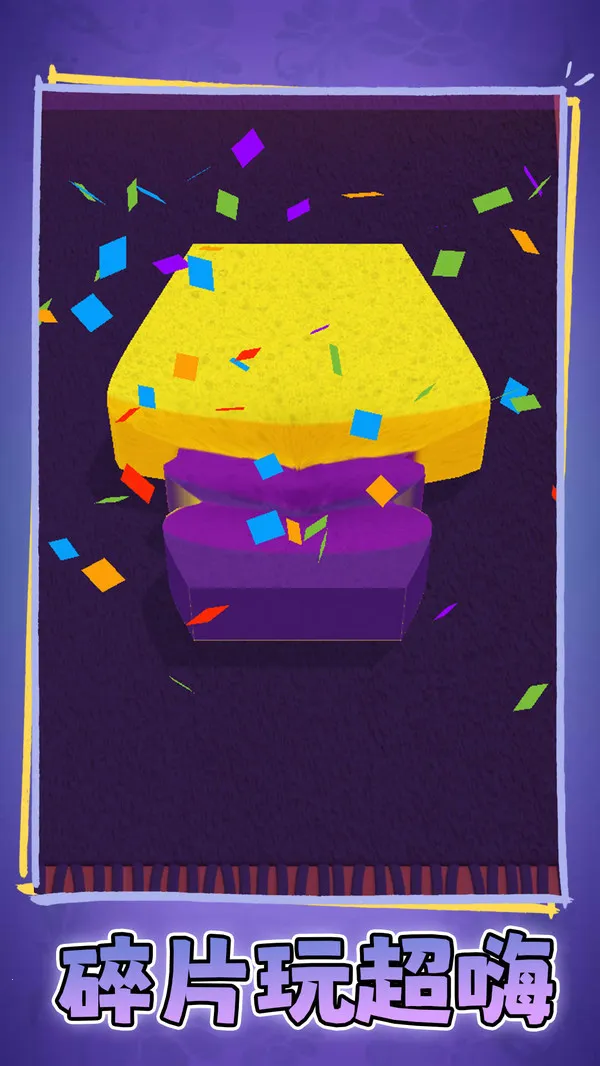 玩法简单易懂,进入游戏后按虚线指引滑动绿色海绵,通过横纵完整切割成指定形状就能完成首关挑战。后续关卡虽有难度提升,但也乐趣十足。它特色满满,自由创作无拘束,告别传统模板限制;超 200 个精心设计的主题关卡,涵盖多个领域;还有智能评分系统给出专业建议助你进步;提升等级能解锁更多高级材料丰富创作可能。其亮点也十分突出,操作简单流畅,关卡难度循序渐进,后期极具烧脑性,3D 卡通渲染与马卡龙色系带来温馨视觉体验,还支持离线畅玩。快来试试万物皆可消除,在创造中收获成就感与治愈感吧!