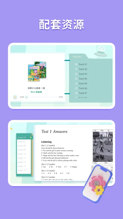 3、专业语音训练:孩子可借助专业教材中的语音进行口语学习与锻炼。