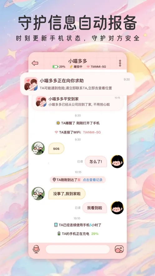 2、情侣守护:时刻查询对方位置,守护对方安全出行。出门在外也能互相安心,给彼此多一份安全感,让距离不再成为感情的阻碍。