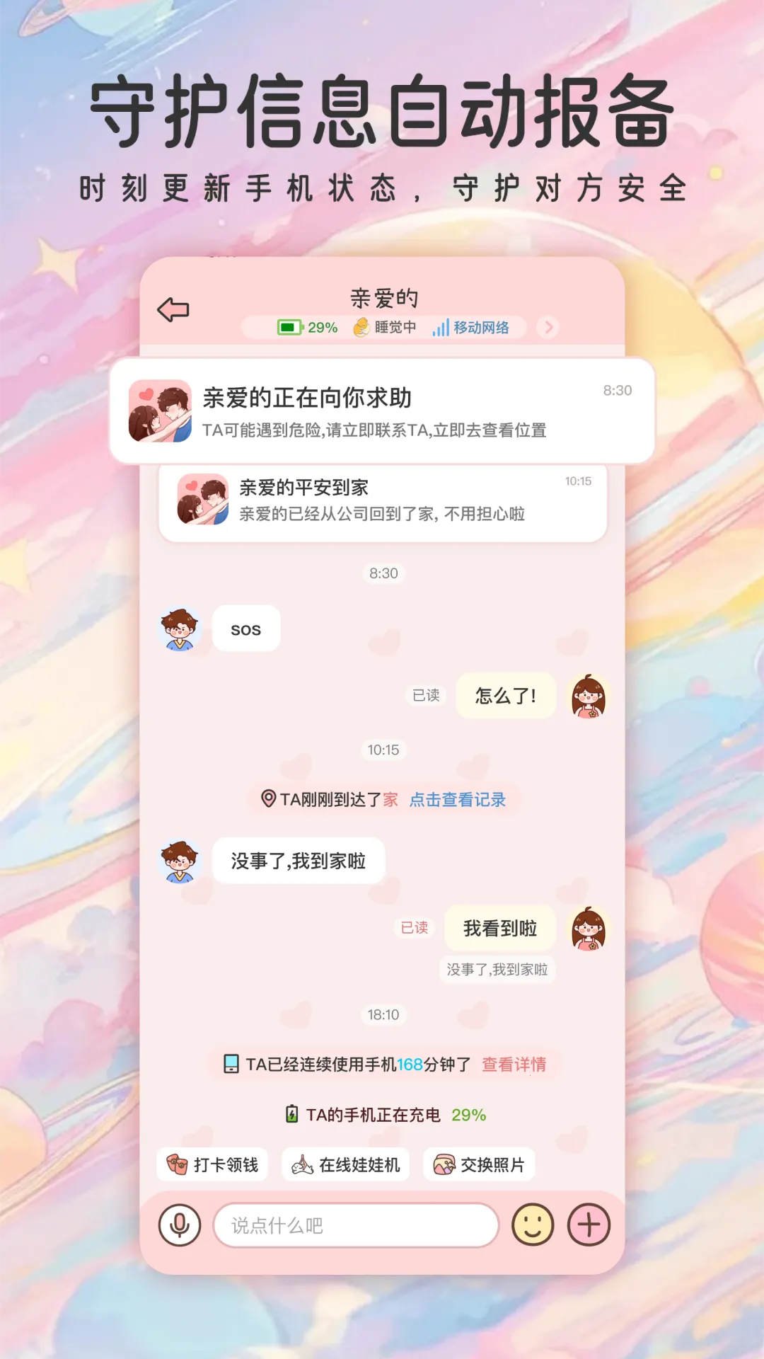 3、独立聊天空间:信息不会被其他消息打扰,和另一半聊得更安心、专注。能更尽情地分享彼此的喜怒哀乐,增进感情。