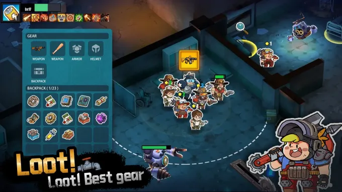 僵尸突围小队 内置(末日策略游戏)v1.0 官方正版《僵尸突围小队》是一款末日背景的角色扮演策略游戏。玩家扮演领导者,带领士兵对抗丧尸,铲除敌人、保护安危。可建基地、管理资源,玩法丰富,如合理布局英雄、合成高等级角色。随机策略玩法充满新鲜感,适合新手。