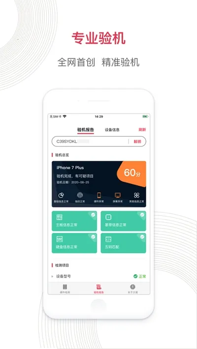 2. 检测报告具权威性,可作判断依据,能让你及时了解手机真伪及翻新情况,防丢绑定功能强大。