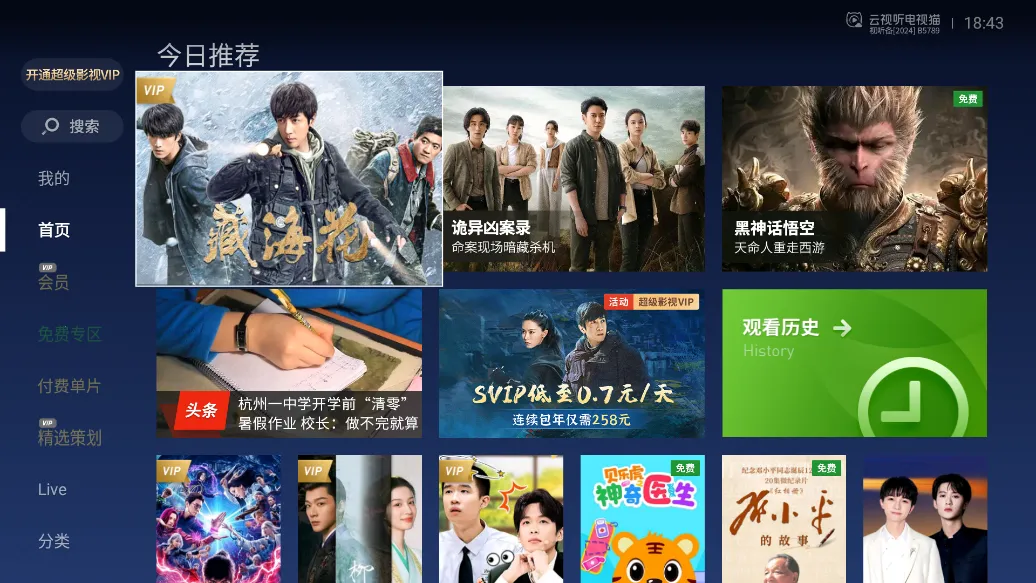 2. 家庭化内容:精心挑选适合全家观看的优质视听内容,涵盖电影、电视剧、综艺、动漫等,满足全家人的需求。
