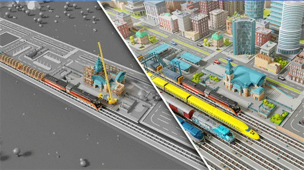 2、游戏采用精致的欧美卡通3D美术风格,构建出一个生动逼真的铁路运输世界。玩家将化身铁路公司掌舵人,从无到有搭建属于自己的铁路网络,设计高效线路连接城市与资源点,确保物流畅通。