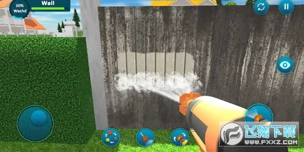 3、左侧虚拟摇杆控制角色移动,右侧按钮操控水枪方向与喷射,精准清理每一处污迹。