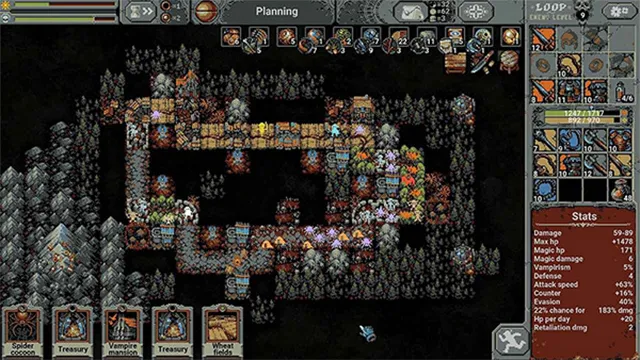战斗中,玩家巧妙放置地形建筑与敌人卡牌构建挑战,融合自动战斗与资源收集玩法。每一次循环都是全新开始,利用丰富战利品升级营地设施,解锁全新职业与强力卡牌。