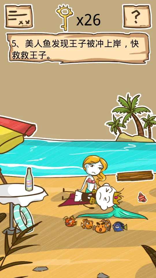 5、持续点击王子的胸口,让王子把鱼吐完。