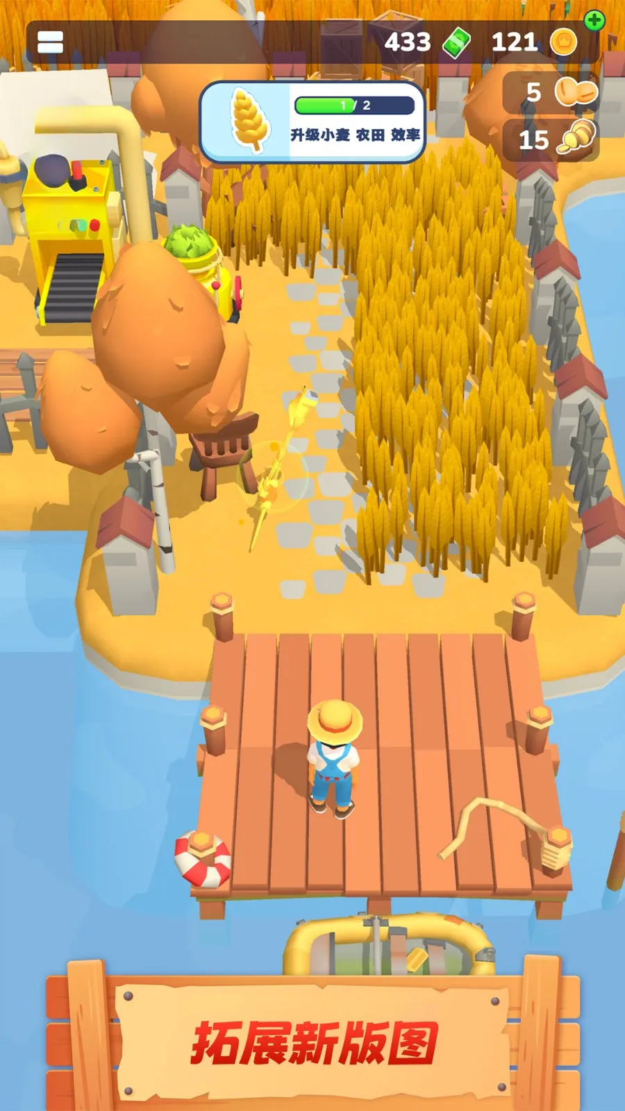 玩法丰富:可在森林采集资源,用加工厂加工商品赚钞票,解锁田园木材等。区域不断解锁,玩法更多,还能种作物获大量钞票,努力经营从小农场发展成大型农庄。
