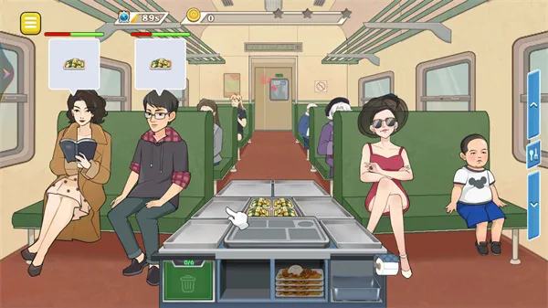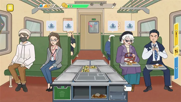 菜单丰富多样,从简单沙拉到复杂主菜,随着游戏进度需掌握更多菜谱,满足不同乘客口味需求。