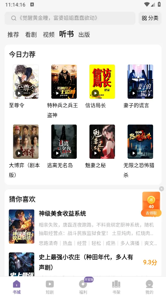 你是否想在忙碌之余,轻松享受故事的陪伴?沐香这款听书app就能满足你!它有着海量优质有声小说,让你双手解放,轻松双眼。平台通过精准分类与顺畅体验,为你呈现沉浸式听觉世界。这里小说题材丰富多元,言情、玄幻、都市、仙侠等热门题材应有尽有,能满足不同听众喜好。你还可以即时关注作品更新,章节上线便会收到通知,紧跟故事节奏不掉队。平台会依照你的播放习惯自动匹配相似内容,让你不断发现新作品。而且它提供多种聆听调节选项,包含定时关闭、音量与倍速设置,打造舒适听书环境。每次播放自动记录时间,重新进入可继续收听。强大搜索工具能按关键词及多维度筛选,快速锁定目标小说。除了有声小说,还有多样化短剧。内置书架管理功能,可收藏整理已听作品,随时回味精彩情节。快来下载沐香,开启你的听书旅程吧!