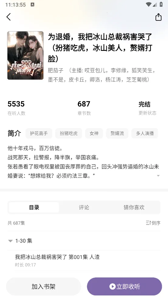 2. 海量优质有声小说,题材丰富多元,无论是言情玄幻都市仙侠,还是更多热门题材,都能在这里找到合心意的作品,满足不同听众喜好。