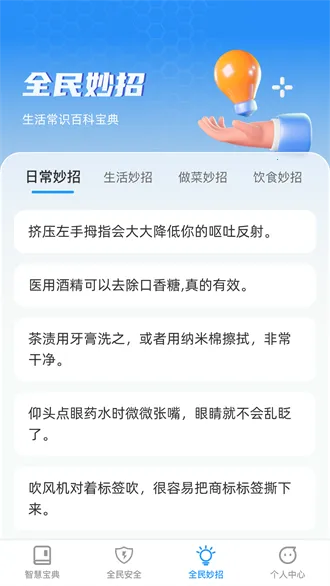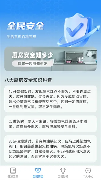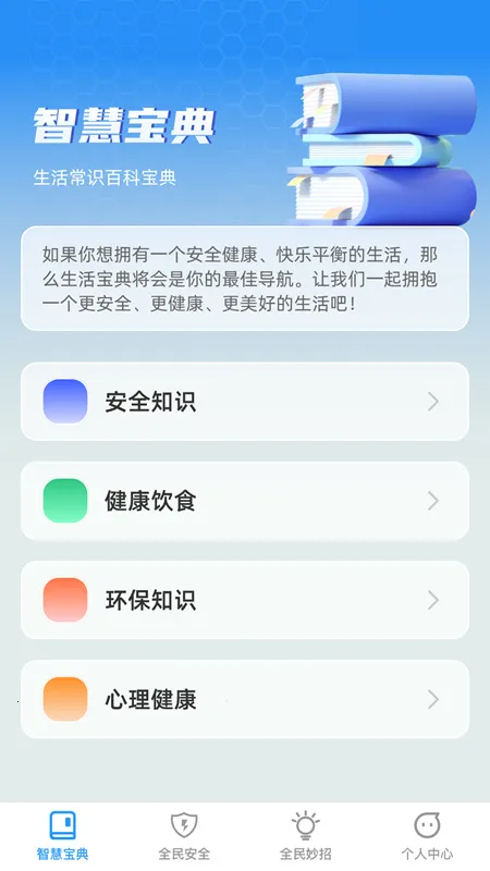 全民智慧宝2025最新版本是线上健康知识获取平台,涵盖健康饮食、安全知识、环保介绍等多方面,知识超详细。能阅读学习分享,还可通过学习获红包,以图文形式清晰呈现,满足日常需求,解决生活问题。